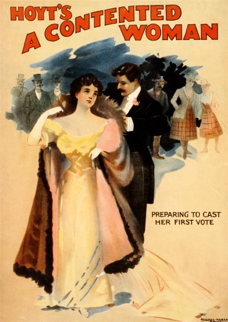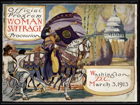 And here are a few more images from the era, the first a cover from the Woman Suffrage procession in 1913, the second a photo from that procession, then a 1913 postcard, and an 1898 program cover from a play that explored the issue of women voting.