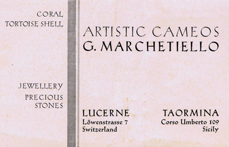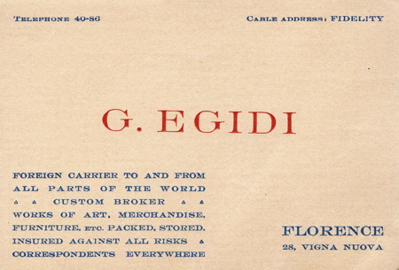 I don’t know if the trip was for business or pleasure, but the variety of cards would indicate an interest in everything from good food and fine antiques to women’s lingerie and marble statues. Click on any image for a larger version.