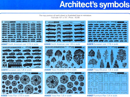 Letraset had special dry-transfer sheets just for architects. If your company was big enough, there were custom-made logo sheets.