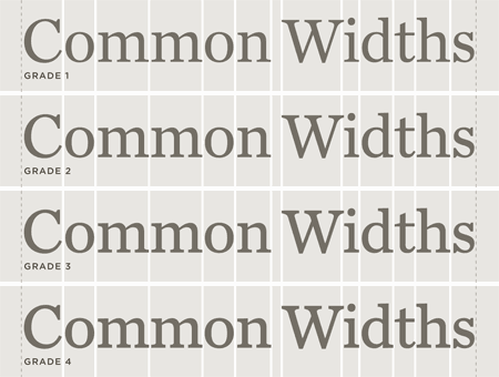 The four grades of Chronicle Text become progressively more robust while maintaining the same character widths: