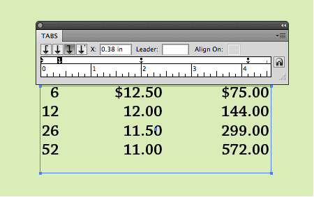 For even more detailed information on setting tabs in Illustrator CS4, check out this article.