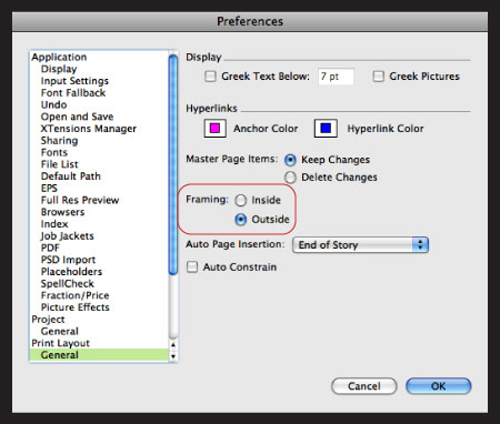 By default, this adds an outline (or “frame,” as Quark calls it) to the inside of the characters. If you prefer the outline on the outside, change the default by going to Preferences > Print Layout > General. Select Outside next to Framing. Changing this preference doesn’t affect boxes already drawn, only new boxes.