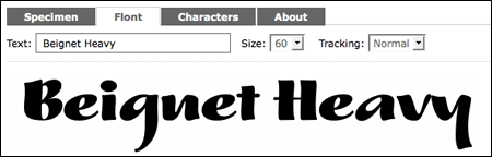 Flont, Veer’s font preview, is more limited than some others. You can access it only once you sign in (which requires registration). Once you’ve signed in and selected the font you want to preview, click on the Flont tab, enter your text and choose a preset font size and tracking.