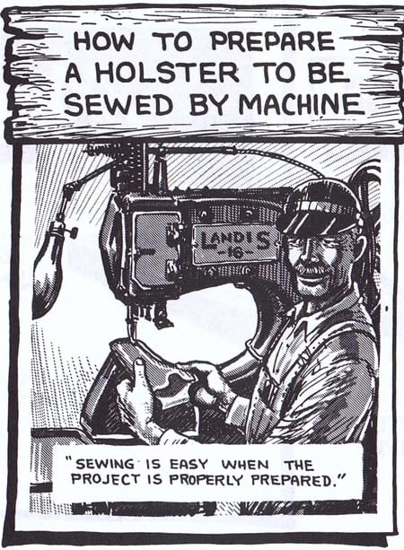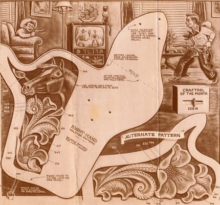 Al Stohlman picked up a yen for leather-working while stationed in New Guinea during World War II. He and his buddies fashioned leather goods using pocketknives and nails. His dream was once to illustrate Western novels, but he went the leather route instead and ended up illustrating his own books, which all have a heavy Western theme.