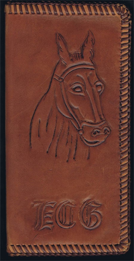 Stohlman was born in 1919, died in 1998, and taught several generations of leather workers their craft. He designed many leather-working tools, sketched an endless number of patterns, and you can visit a museum dedicated to him in Ft. Worth, Texas. He was clearly my father’s inspiration.