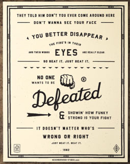 “Beat It,” from the Michael Jackson song, is 11″ x 14″ and costs $30.