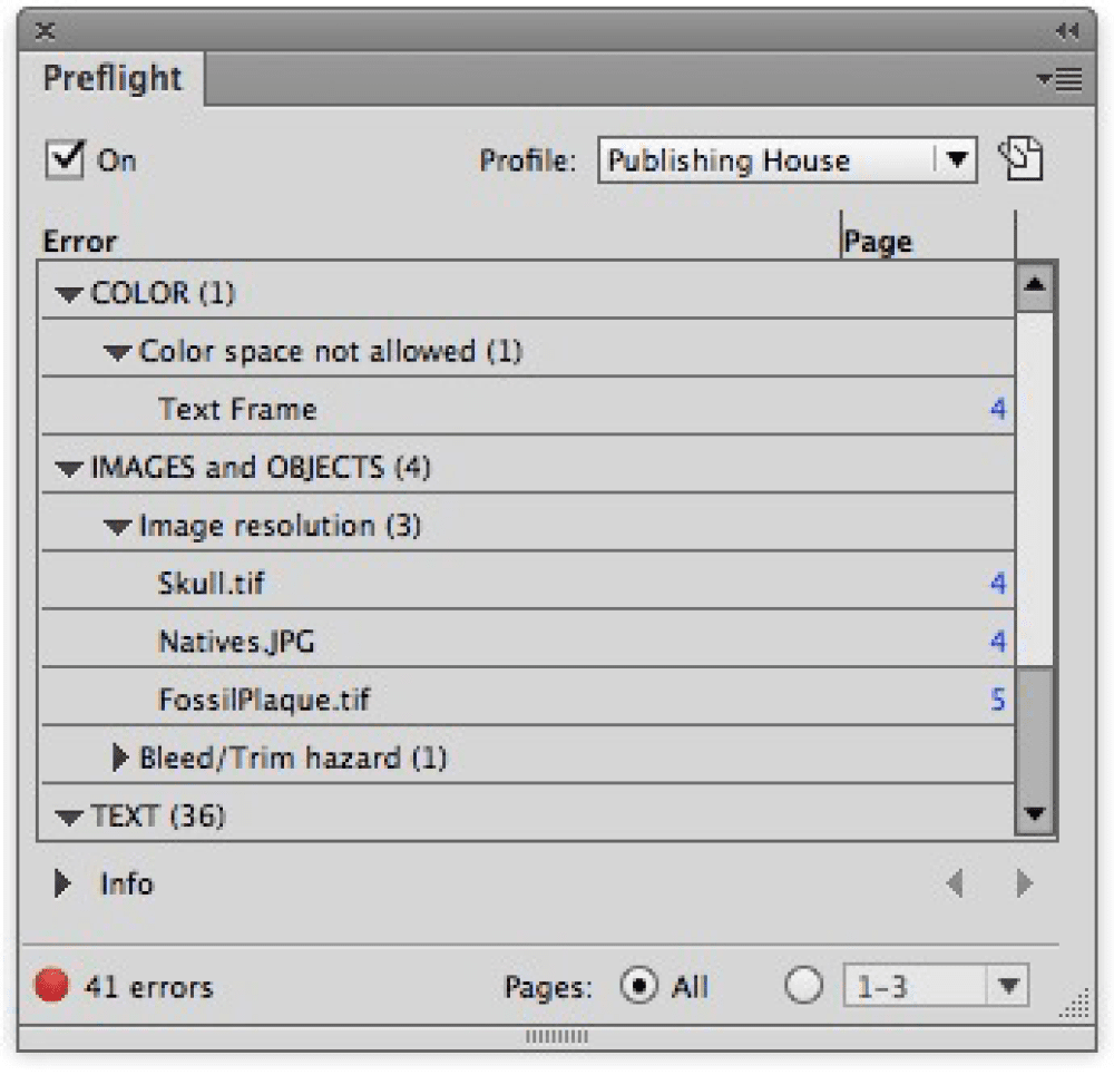 Figure 9: The Preflight panel provides details on potential errors in a document.