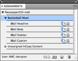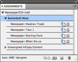 Any InDesign or InCopy user can rename the stories in the Assignments panel so they make more sense. It’s easy: Just check the story out, then click once on its name. The current name becomes selected in an editing box, and whatever you type replaces the selection. For instance, in a feature article, you might want to change the automatic names InDesign used for its stories, “Magazine-Blah,” “Magazine-Blahblah,” and “Magazine-Blahba” to something more human, like “Headline,” “Body,” and “Sidebar.”