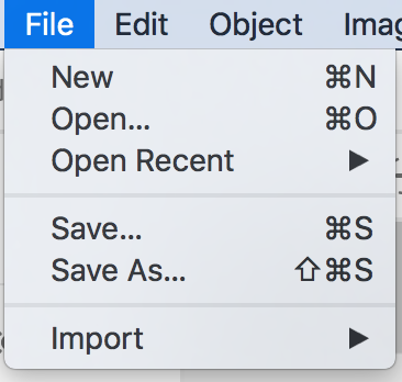 Figure 2: The File menu in Dimension CC. Note the lack of a standard Close command.