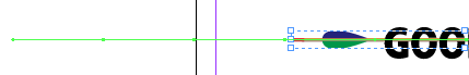 Some new indicators are added to the arrow. There’s a set of three bubbles to show that animation has been applied to the object. And there’s a green path to show the location, direction, and speed of the animation.