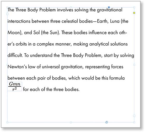If your cursor was in a text frame, the object is inserted there. Or, if you had nothing selected, you can click to place the MathML object, which will create its own frame and behave very much like a placed image (Figure 4).