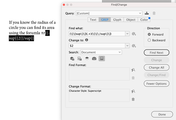 But if I accept these comments in InDesign to fix the math formula, the italics and superscript are wiped out.