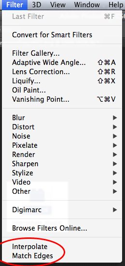After you install the extension, you get two new menu items in the Filter menu: Interpolate and Match Edges