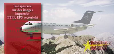 The second image (airplane) simulates how transparency and shadows can be applied to InDesign objects as well as EPS vector objects imported from Adobe Illustrator or bitmap files (TIFF, EPS, PSD).
