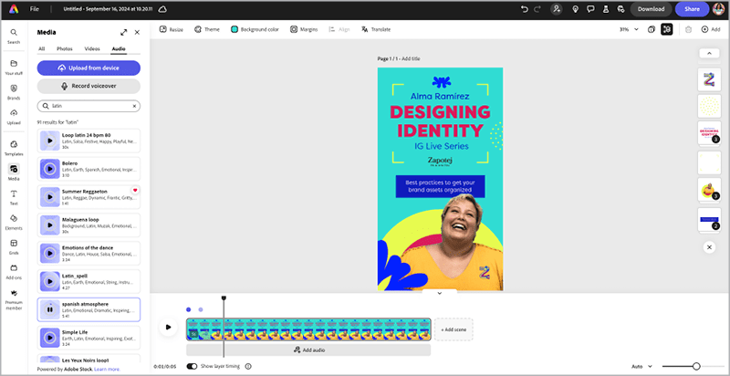 If you have already set up your brand kit, you can apply your brand styling with one click! This head start of automatically adjusting templates to use your brand’s fonts and colors will save you a lot of time.