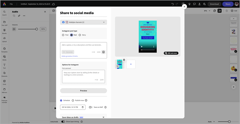 Figure 14. Use Adobe Express to directly publish your work to social media.