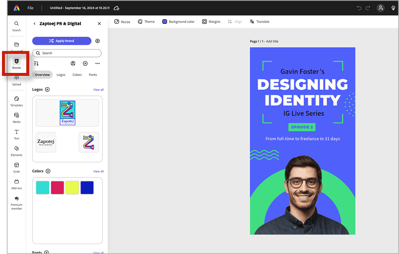 Figure 5. Click Apply Brand to apply colors and fonts from your brand kit to the selected content.