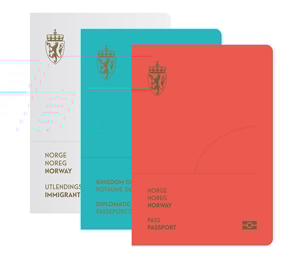 The covers are a break from the usual passport look, but sport a more traditional vibe than the interior pages. There are three covers—in red, white, and teal, representing standard, immigrant, and diplomatic designations—each gold-stamped with the national seal. I guess at some point, even the Norwegians acknowledge these are government documents, after all, that will be seen worldwide; no need to be unnecessarily flashy.
