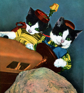 Figure 2: Before Photoshop, cats and dogs were forced into some pretty uncomfortable situations, as shown in these photos from the Rand McNally Elf Book series of 1958.