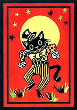 Figure 5: Black cats and Halloween go together, of course, and for some reason cats are often pictured as song and dance animals.
