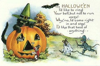Figure 7: When children’s book illustrators want to picture the ultimate friendship, they often show cat and mouse together as in these early Halloween images.