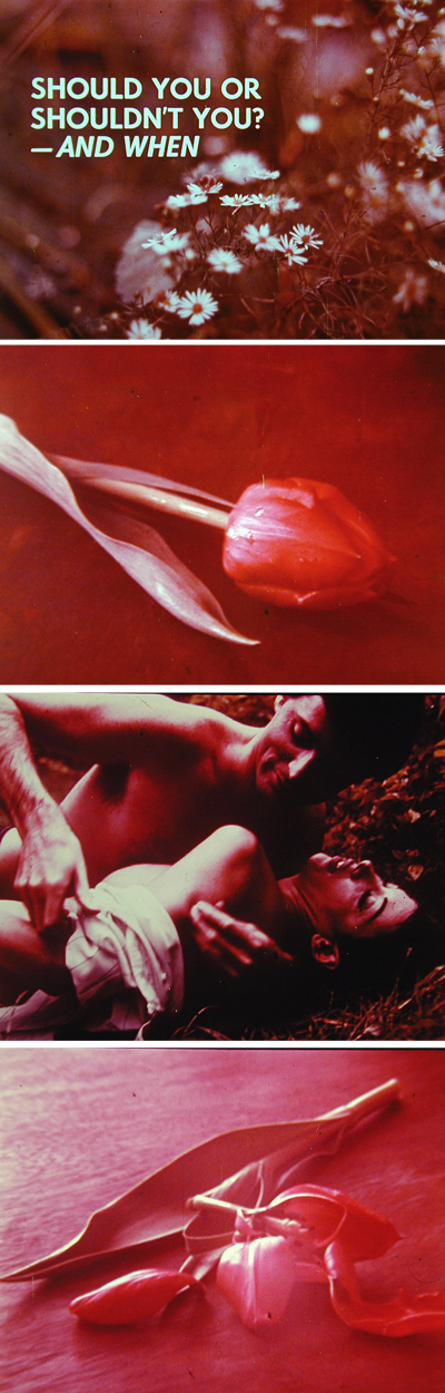 The filmstrip medium became a key vehicle for sex education. In this 1970 classic, Warren Schloat Productions attempts to explain the intricacies of biology and teen life. The not-so-subtle images seem to indicate that if you have sex, your tulips will get wrecked, but since I don’t have the soundtrack, it’s hard to tell what might be going on here.