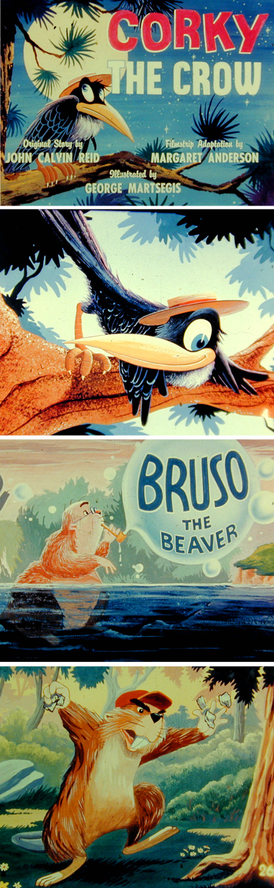 The Cathedral filmstrip series, “Parables from Nature” used drawings from a number of great animators, and included the Christopher Mouse episode written by William Hanna of Hanna-Barbera fame.