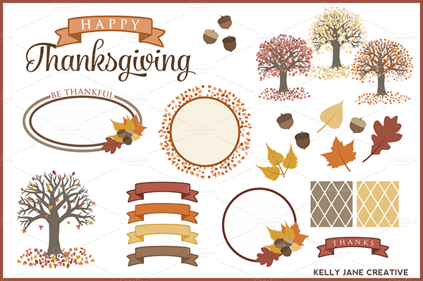 Celebrating late autumn in the US means feasts and harvest and Thanksgiving. This set of autumn vectors contains leaves, acorns, and autumn-hued backgrounds and banners to spruce up your Thanksgiving invitations and placecards. The $8 license allows you to incorporate the designs into personal and commercial products.