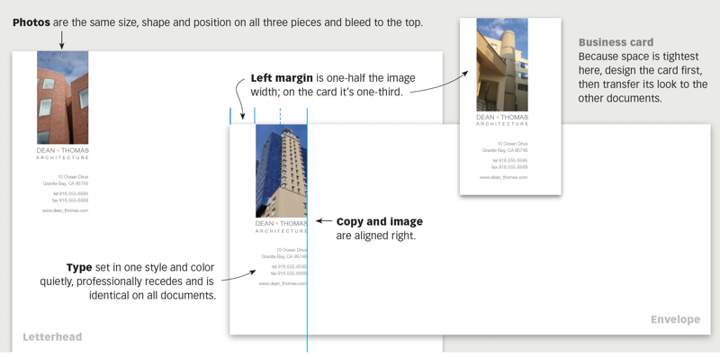 The visual key is consistency of type, size, placement, alignment and color from letterhead to envelope to business card.