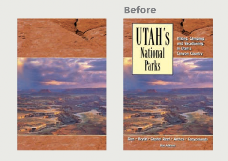 Utah has awe-inspiring national parks, but that’s hard to tell by the cover of this guidebook. Notice how the canyon lands, and the sky and background run together in an indistinct blur.