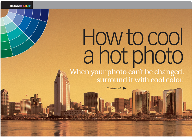 The color wheel is an artificial device that’s good but not perfect— colors in nature aren’t so evenly distributed—whose purpose is to show color relationships. Also on the wheel are values (dark-light) and temperature. This 12-page article from Before&After Magazine answers the question: “How do we cool this heat in this photograph?” The answer is found on the color wheel between ice blue and yellow, in the turquoise blues and verdant greens of springtime.