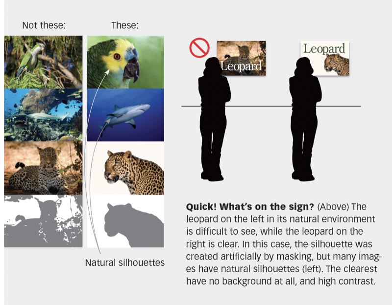 The key is to use one image, few words, simple typefaces, no overlaps (because you need clear silhouettes)—all to keep your design simple.