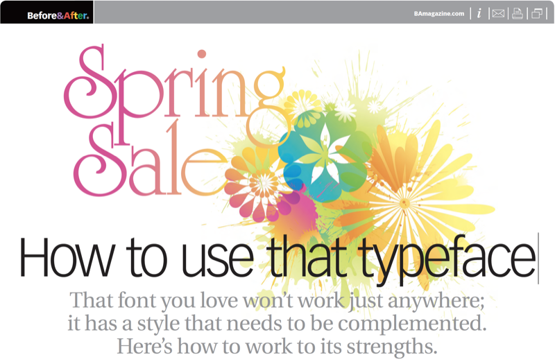 Before you use a font you’ve just seen, you’ll want to know if the lines, shapes and little doodads that made it so appealing to you will work as well in your project. How to tell? Reading a typeface is a little like reading a real face. Tiny differences in the arch of an eyebrow, the curve of a lip, and the contour of a cheekbone convey real presence, personality, and attitude. This 13-page article from issue 48 of Before&After Magazine teaches you how to make the most of a new font and work to its strengths.