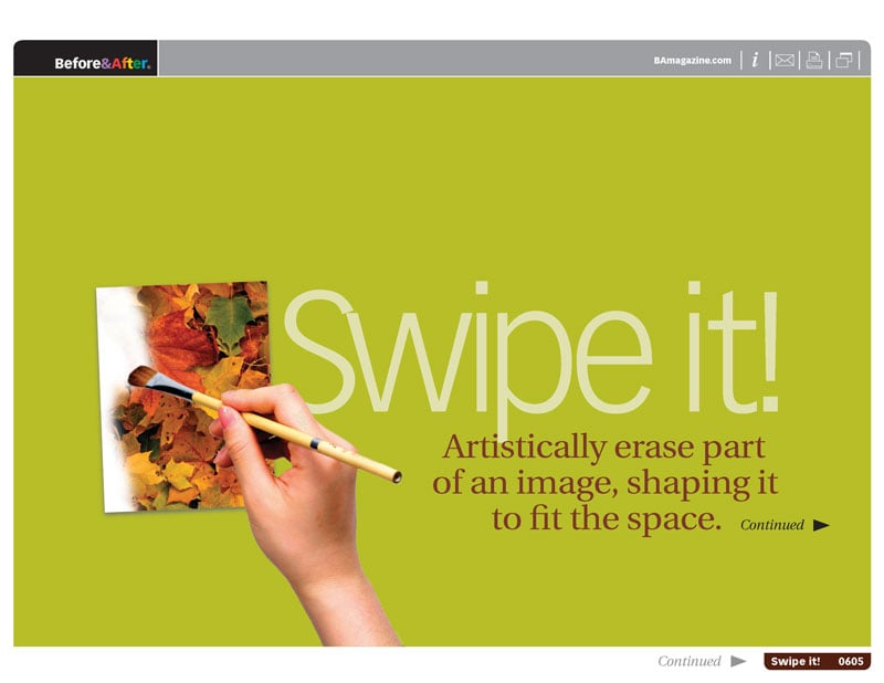 In this classic issue from Before&After Magazine you can learn how to artistically erase part of an image, shaping it to fit the space you have.