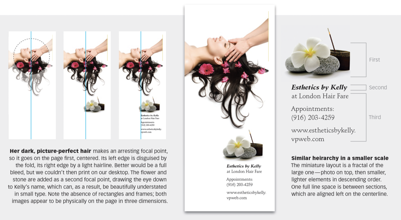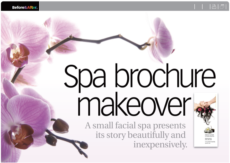 This spa’s brochure needed to be a simple one letter-folded sheet to give to customers—no need to “sell,” nothing to mail. With a built-in audience in familiar surroundings, you’d think that design would be easy, but telling a clear story in words and pictures would still be as demanding. This 18-page article from issue 50 of Before&After Magazine demonstrates how some carefully selected stock images and crystal-clear type help a small business present its story beautifully and inexpensively.