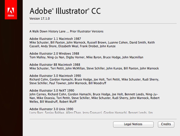 One nice touch is that the names of folks who worked on Illustrator all the way back to the ’80s are included in the credits.