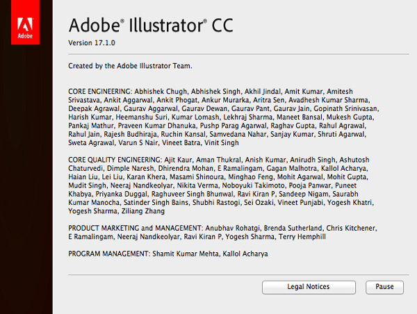 If you use a certain application day in and day out, you develop your own top 10 feature requests and most hated bugs. And when a new version of the application appears, sometimes you get what you wished for, sometimes you don’t. But the features and fixes that appear in your favorite applications aren’t there by mere chance. They’re the result of the inspiration and effort of real people. Y’know the folks whose names appear in the credits list, like this one for Illustrator 17.1.