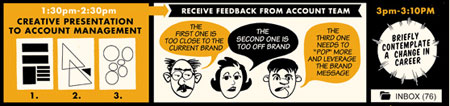 You’ve seen what the life of an illustrator looks like, now take a gander at a day in the life of a graphic designer. This is just one small part of the entire image. Via How Design.