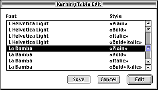 - If you’ve had to make several changes to the kerning table for a font, try exporting that table and then importing it to use with the bold font of that same family. Sometimes just a few adjustments in the new bold kerning table will be all that’s necessary, saving a lot of repetitive work.