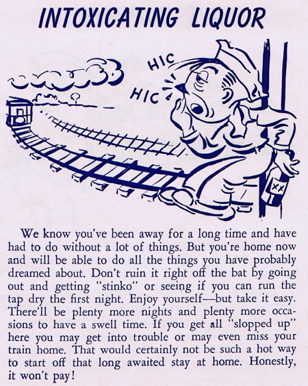 From there it was on to Camp Kilmer in New Jersey, where returning GIs were processed and sent home. These pages from the Camp Kilmer manual are worth reading.