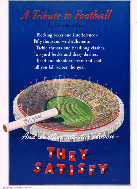 The Chesterfield ad is from the back cover of one of the football programs back when it was okay to market cigarettes to children.