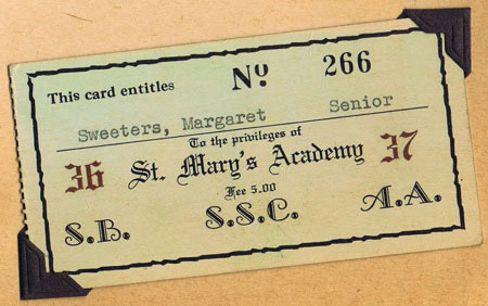 Go to page 2 to see the St. Mary’s school yell, a Parlor Call Card, and nun-drawn calligraphy.