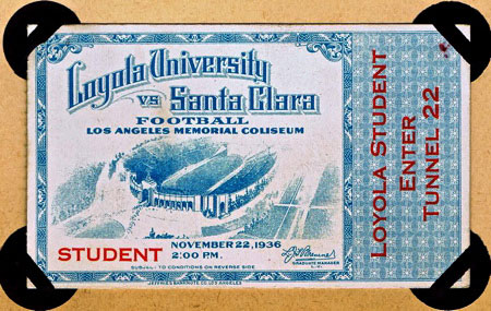 But once you strip away the religious layer, the rest of my mother’s scrapbook seems typical. She had tickets for a number of football games at nearby Loyola University the then all-male Catholic institution where several of her brothers attended.