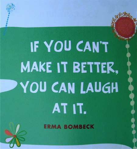 In addition to the fuzzy bears, there were a few small books, also of the inspiration variety. Here, from a pocket-sized edition, are all kinds of reasons why you should look at your hospital stay or recent life-threatening experience humorously. There’s nothing like a pithy Erma Bombeck quote to lighten up the moment.