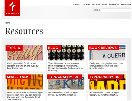 Twitter might seem like an unlikely addition to this list, but it’s rapidly becoming one of the most varied and interesting resources for typographic sightings, whether print, Web, or motion graphics. Follow your favorite foundries, designers, and bloggers. Sign up for the typography twibe to focus on type-related posts, or search for “typography” to filter type-related posts and links.