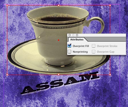 Step 6: Turning on Overprint Fill in the Attributes palette tells InDesign not to knock out the image underneath the varnish plate.