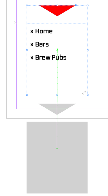 The next step is going to seem a bit backward, so bear with me; I promise you’ll see why I’m doing this. We’re going to add some artwork that will act as a button to close the menu. I’ll draw a triangle here, but you can use whatever works for your design. Once it’s in position, group it with the text frame (Figure 6).