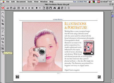 Figure 5: The Adobe Acrobat (version 4.05) interface and a page from photographer George Wedding’s completed photography CD portfolio.