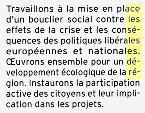 I was provoked to write on this subject by an election flyer handed to me in the local market ahead of the recent French elections for regional governments. When I saw the text, I had one of those “What’s wrong with this picture?” moments. The type looked weird, but why?