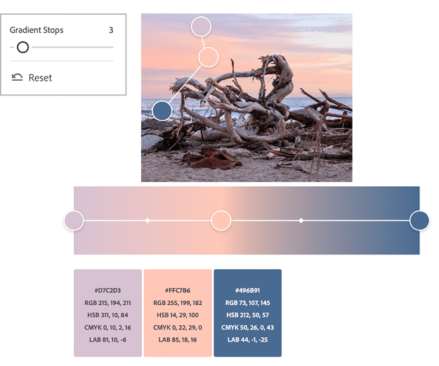 Figure 15. Extracting a gradient from an image uploaded to Adobe Color